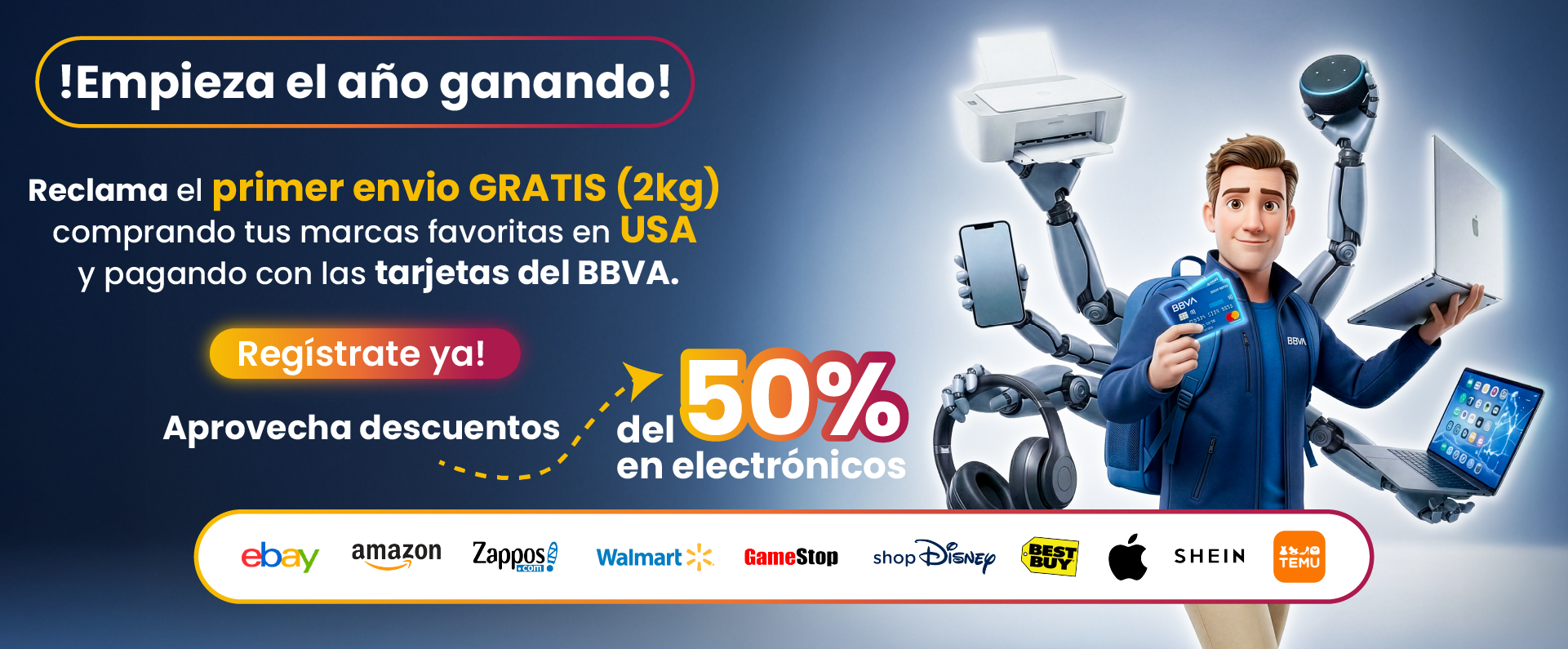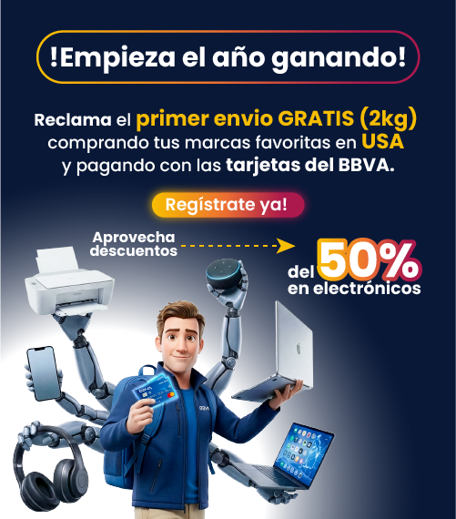 Primer envío internacional gratis hasta 2 kg desde EE. UU. a Colombia.